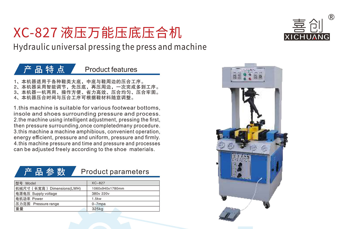 XC-827液压万能压底压合机